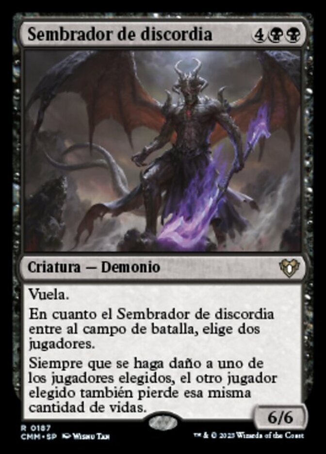 | Rules | Flying As Sower of Discord enters the battlefield, choose two players. Whenever damage is dealt to one of the chosen players, the other chosen player also loses that much life. |