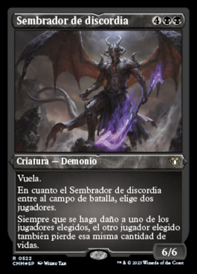 | Rules | Flying As Sower of Discord enters the battlefield, choose two players. Whenever damage is dealt to one of the chosen players, the other chosen player also loses that much life. |