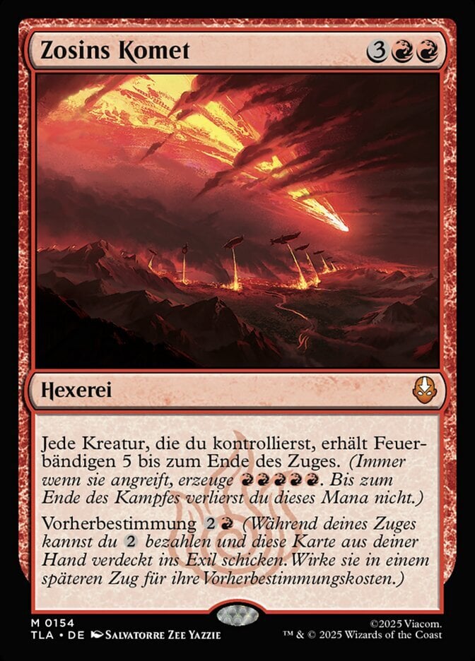 | Rules | Each creature you control gains firebending 5 until end of turn. (Whenever it attacks, add . This mana lasts until end of combat.) Foretell (During your turn, you may pay and exile this card from your hand face down. Cast it on a later turn for its foretell cost.) |