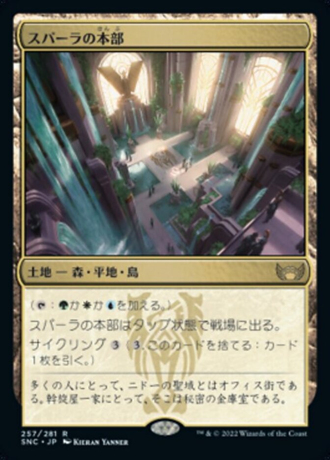 | Rules | (: Add , , or .) Spara's Headquarters enters the battlefield tapped. Cycling (, Discard this card: Draw a card.) |