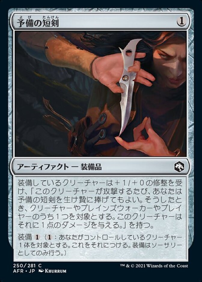 | Rules | Equipped creature gets +1/+0 and has "Whenever this creature attacks, you may sacrifice Spare Dagger. When you do, this creature deals 1 damage to any target." Equip (: Attach to target creature you control. Equip only as a sorcery.) |