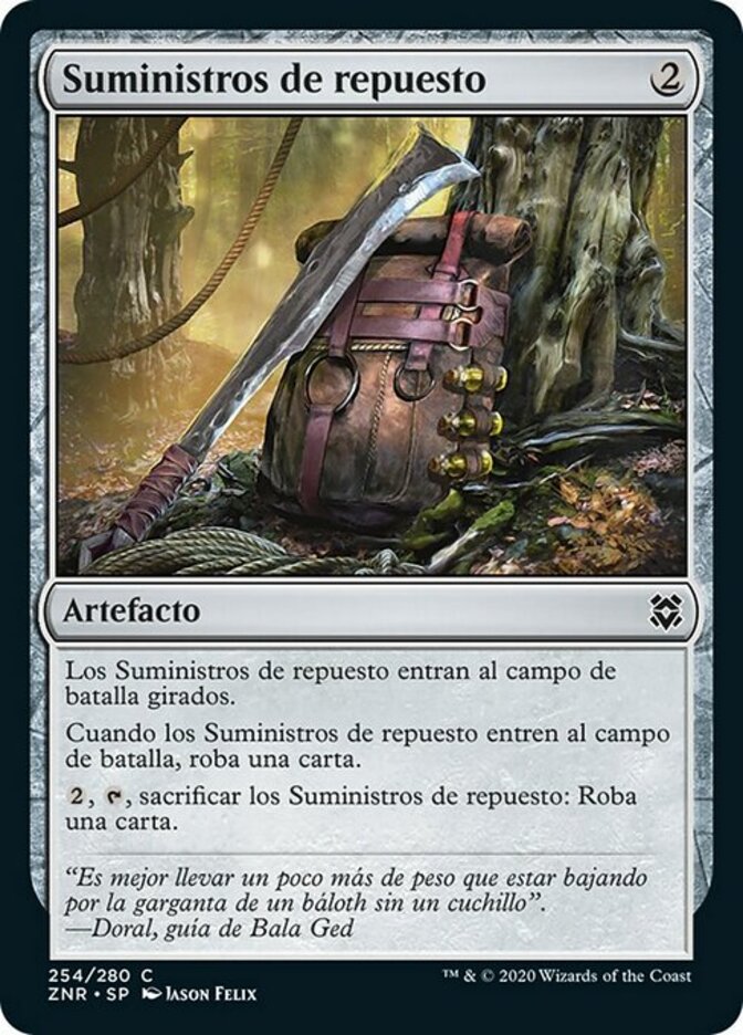 | Rules | Spare Supplies enters the battlefield tapped. When Spare Supplies enters the battlefield, draw a card. , , Sacrifice Spare Supplies: Draw a card. |
