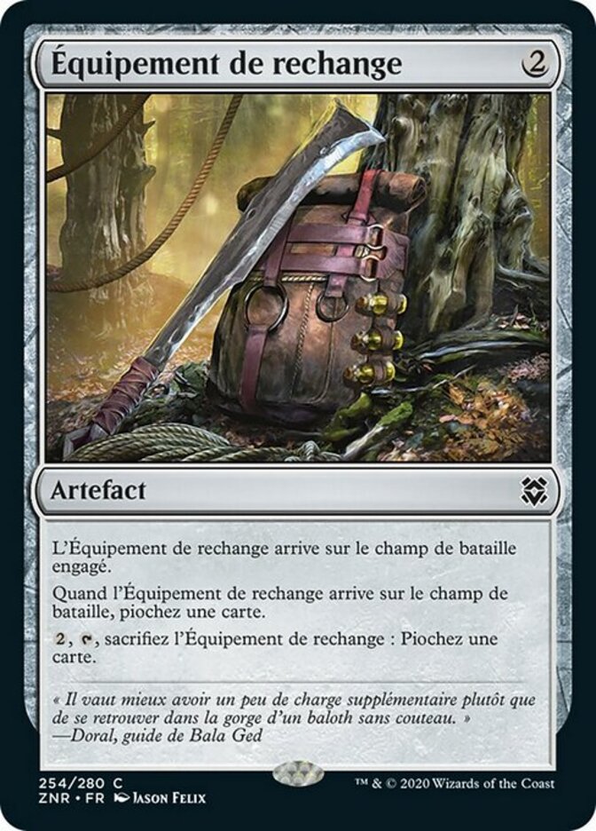 | Rules | Spare Supplies enters the battlefield tapped. When Spare Supplies enters the battlefield, draw a card. , , Sacrifice Spare Supplies: Draw a card. |