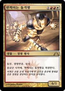 | Rules | Trample, lifelink, haste At the beginning of the end step, sacrifice Spark Trooper. |