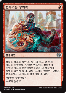 | Rules | Choose target creature. Exile the top card of your library. You may have Spark of Creativity deal damage to that creature equal to the exiled card's mana value. If you don't, you may play that card until end of turn. |
