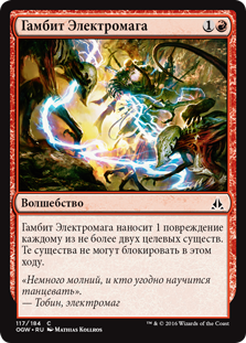 | Rules | Sparkmage's Gambit deals 1 damage to each of up to two target creatures. Those creatures can't block this turn. |