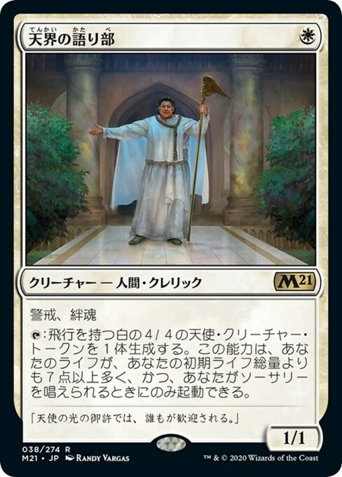 | Rules | Vigilance, lifelink : Create a 4/4 white Angel creature token with flying. Activate only if you have at least 7 life more than your starting life total and only as a sorcery. |