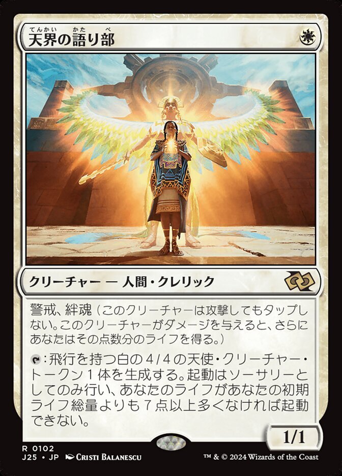 | Rules | Vigilance, lifelink : Create a 4/4 white Angel creature token with flying. Activate only if you have at least 7 life more than your starting life total and only as a sorcery. |