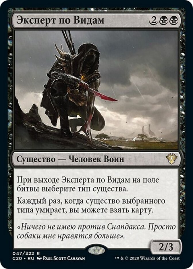 | Rules | As Species Specialist enters the battlefield, choose a creature type. Whenever a creature of the chosen type dies, you may draw a card. |