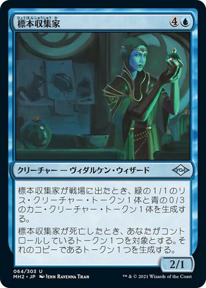 | Rules | When Specimen Collector enters the battlefield, create a 1/1 green Squirrel creature token and a 0/3 blue Crab creature token. When Specimen Collector dies, create a token that's a copy of target token you control. |