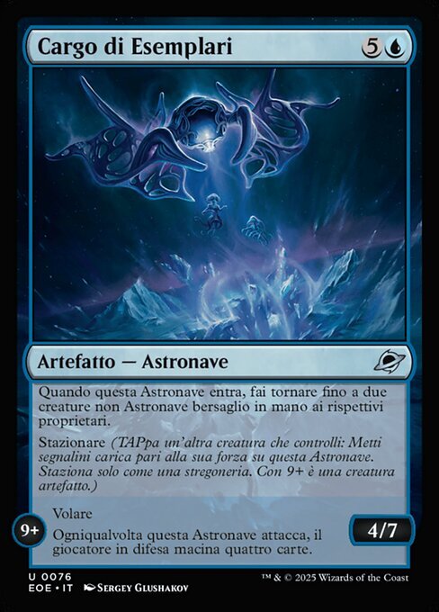 | Rules | When this Spacecraft enters, return up to two target non-Spacecraft creatures to their owners' hands. Station (Tap another creature you control: Put charge counters equal to its power on this Spacecraft. Station only as a sorcery. It's an artifact creature at 9+.) STATION 9+ Flying Whenever this Spacecraft attacks, defending player mills four cards. |