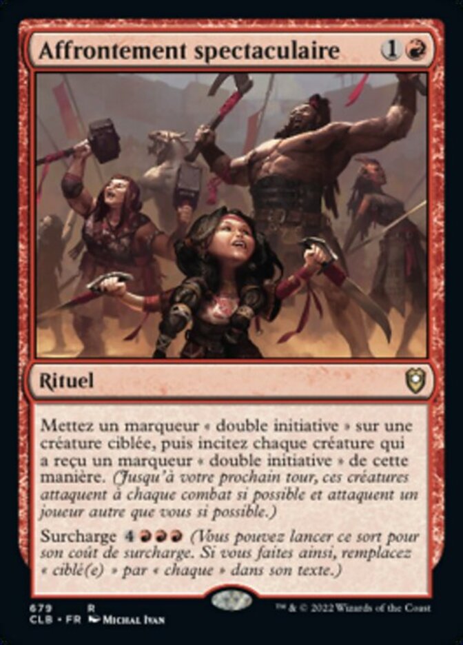 | Rules | Put a double strike counter on target creature, then goad each creature that had a double strike counter put on it this way. (Until your next turn, those creatures attack each combat if able and attack a player other than you if able.) Overload (You may cast this spell for its overload cost. If you do, change "target" in its text to "each".) |