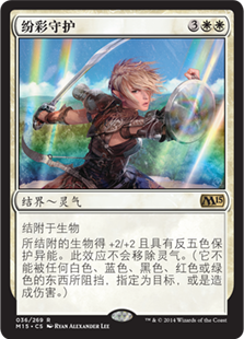 | Rules | Enchant creature Enchanted creature gets +2/+2 and has protection from all colors. This effect doesn't remove Auras. (It can't be blocked, targeted, or dealt damage by anything that's white, blue, black, red, or green.) |