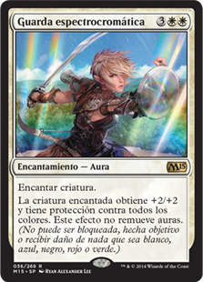 | Rules | Enchant creature Enchanted creature gets +2/+2 and has protection from all colors. This effect doesn't remove Auras. (It can't be blocked, targeted, or dealt damage by anything that's white, blue, black, red, or green.) |