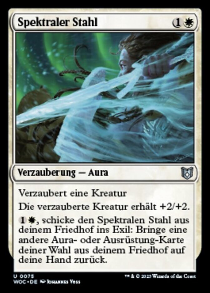 | Rules | Enchant creature Enchanted creature gets +2/+2. , Exile Spectral Steel from your graveyard: Return another target Aura or Equipment card from your graveyard to your hand. |