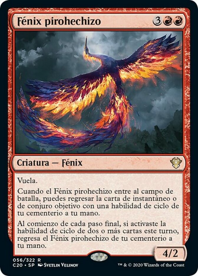| Rules | Flying When Spellpyre Phoenix enters the battlefield, you may return target instant or sorcery card with a cycling ability from your graveyard to your hand. At the beginning of each end step, if you cycled two or more cards this turn, return Spellpyre Phoenix from your graveyard to your hand. |