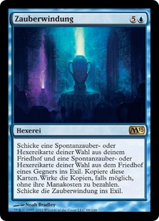 | Rules | Exile target instant or sorcery card from your graveyard and target instant or sorcery card from an opponent's graveyard. Copy those cards. Cast the copies if able without paying their mana costs. Exile Spelltwine. |