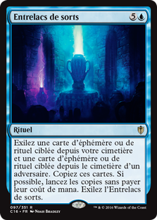 | Rules | Exile target instant or sorcery card from your graveyard and target instant or sorcery card from an opponent's graveyard. Copy those cards. Cast the copies if able without paying their mana costs. Exile Spelltwine. |