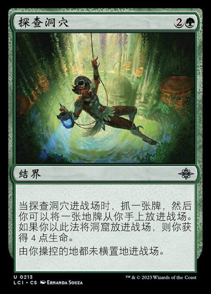 | Rules | When Spelunking enters the battlefield, draw a card, then you may put a land card from your hand onto the battlefield. If you put a Cave onto the battlefield this way, you gain 4 life. Lands you control enter the battlefield untapped. |