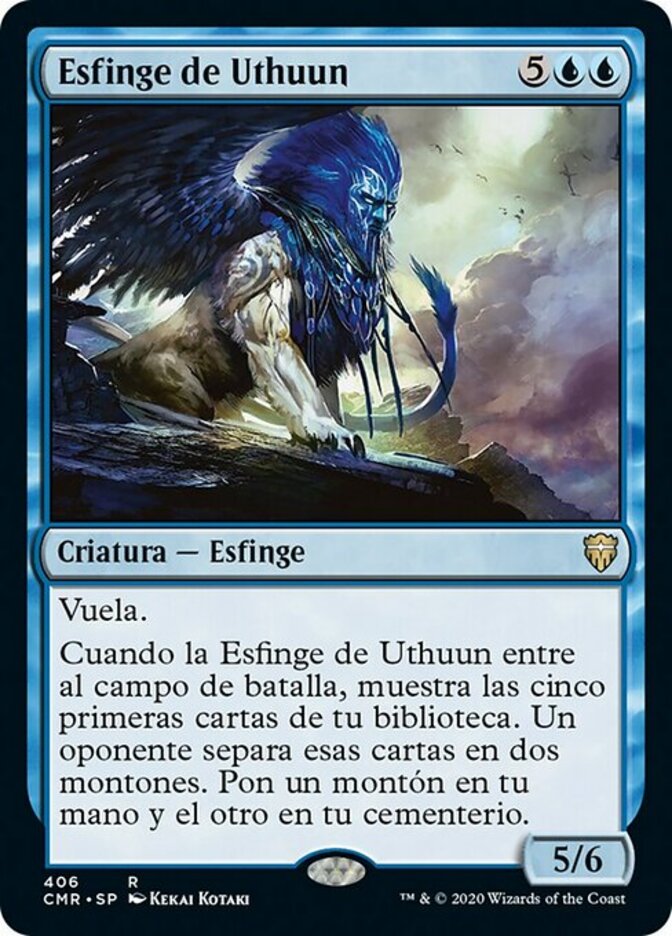 | Rules | Flying When Sphinx of Uthuun enters the battlefield, reveal the top five cards of your library. An opponent separates those cards into two piles. Put one pile into your hand and the other into your graveyard. |