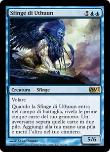 | Rules | Flying When Sphinx of Uthuun enters the battlefield, reveal the top five cards of your library. An opponent separates those cards into two piles. Put one pile into your hand and the other into your graveyard. |