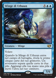| Rules | Flying When Sphinx of Uthuun enters the battlefield, reveal the top five cards of your library. An opponent separates those cards into two piles. Put one pile into your hand and the other into your graveyard. |