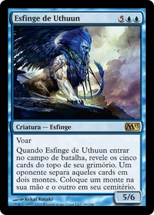 | Rules | Flying When Sphinx of Uthuun enters the battlefield, reveal the top five cards of your library. An opponent separates those cards into two piles. Put one pile into your hand and the other into your graveyard. |