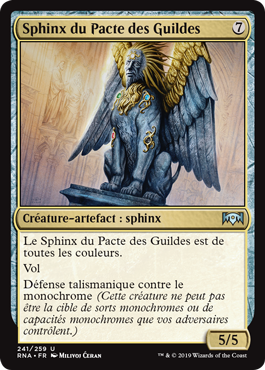 | Rules | Sphinx of the Guildpact is all colors. Flying Hexproof from monocolored (This creature can't be the target of monocolored spells or abilities your opponents control.) |