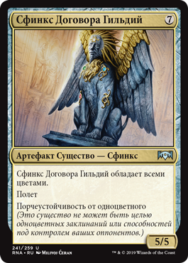 | Rules | Sphinx of the Guildpact is all colors. Flying Hexproof from monocolored (This creature can't be the target of monocolored spells or abilities your opponents control.) |