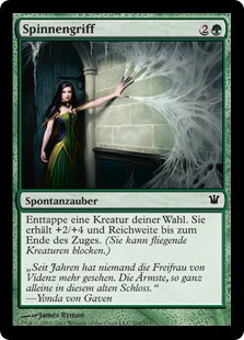 | Rules | Untap target creature. It gets +2/+4 and gains reach until end of turn. (It can block creatures with flying.) |
