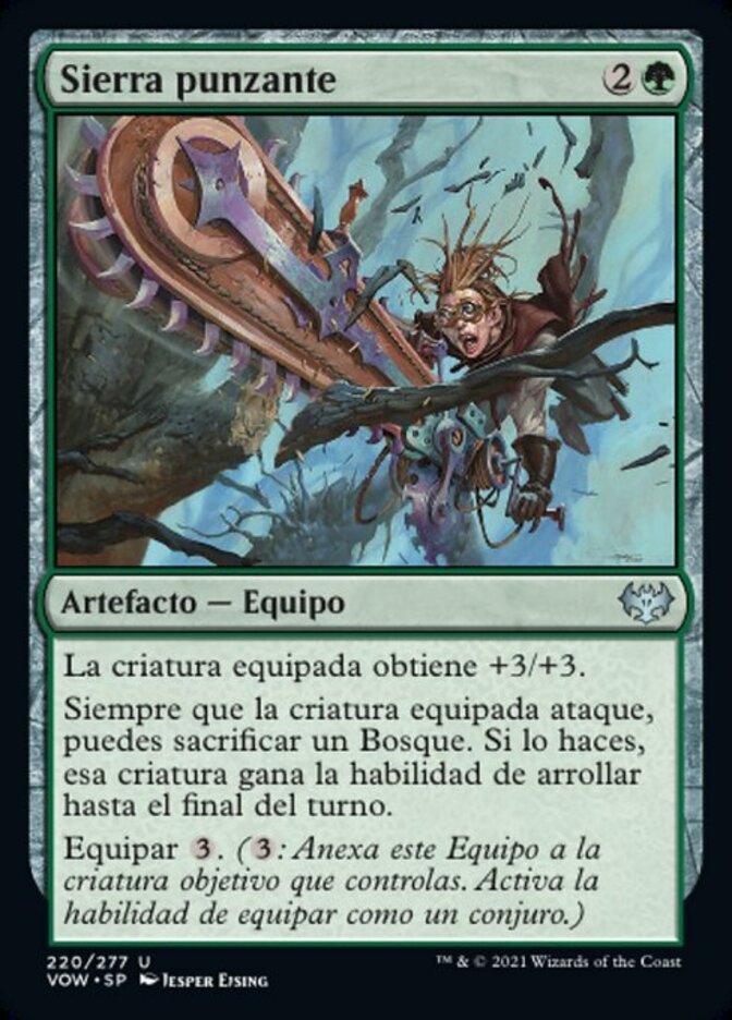| Rules | Equipped creature gets +3/+3. Whenever equipped creature attacks, you may sacrifice a Forest. If you do, that creature gains trample until end of turn. Equip (: Attach to target creature you control. Equip only as a sorcery.) |