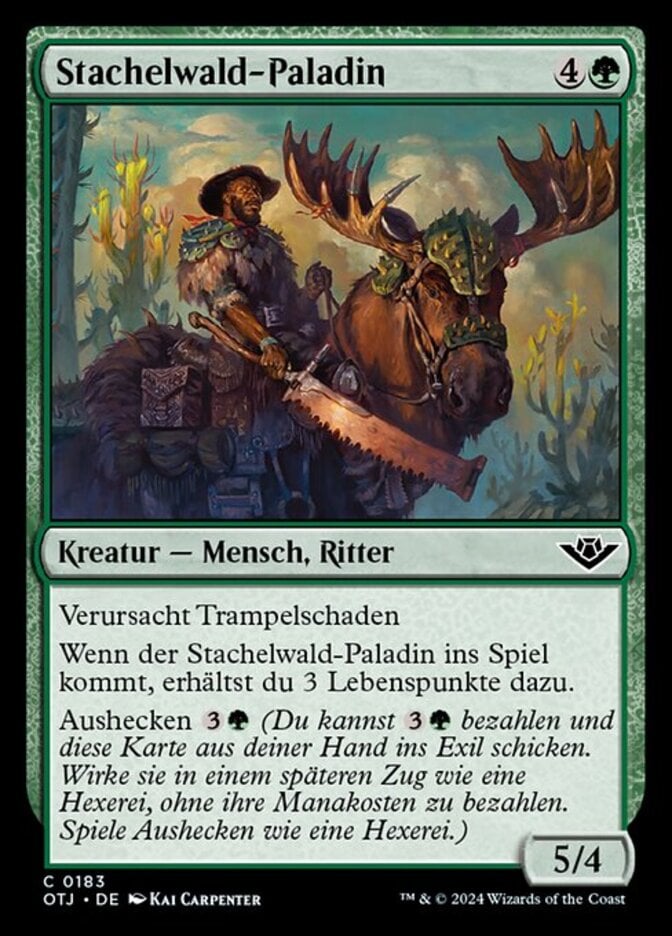 | Rules | Trample When Spinewoods Paladin enters the battlefield, you gain 3 life. Plot (You may pay and exile this card from your hand. Cast it as a sorcery on a later turn without paying its mana cost. Plot only as a sorcery.) |