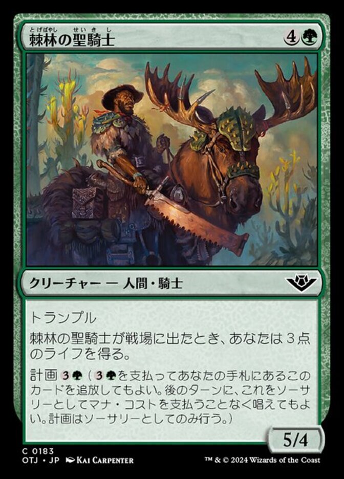 | Rules | Trample When Spinewoods Paladin enters the battlefield, you gain 3 life. Plot (You may pay and exile this card from your hand. Cast it as a sorcery on a later turn without paying its mana cost. Plot only as a sorcery.) |