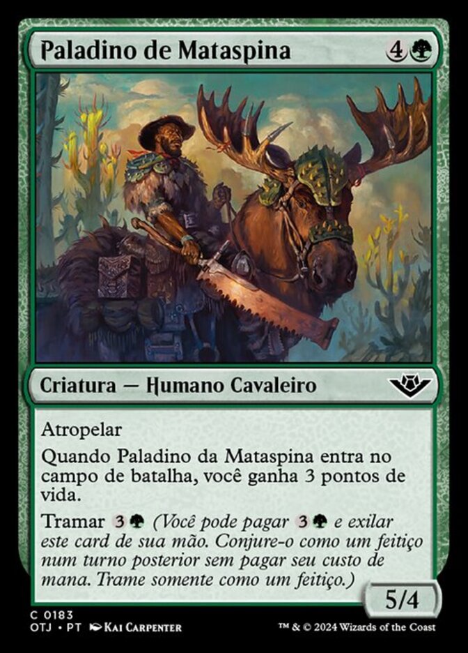 | Rules | Trample When Spinewoods Paladin enters the battlefield, you gain 3 life. Plot (You may pay and exile this card from your hand. Cast it as a sorcery on a later turn without paying its mana cost. Plot only as a sorcery.) |