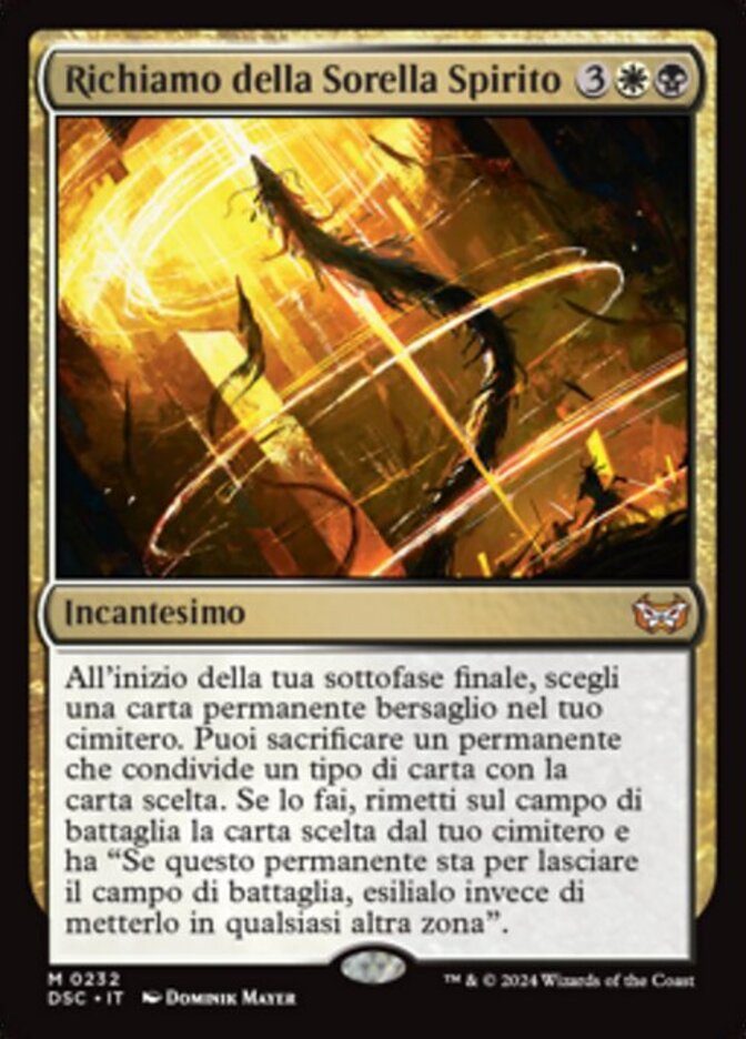 | Rules | At the beginning of your end step, choose target permanent card in your graveyard. You may sacrifice a permanent that shares a card type with the chosen card. If you do, return the chosen card from your graveyard to the battlefield and it gains "If this permanent would leave the battlefield, exile it instead of putting it anywhere else." |