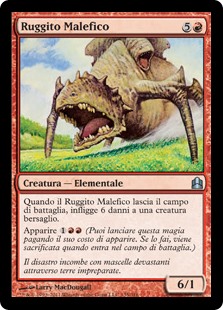 | Rules | When Spitebellows leaves the battlefield, it deals 6 damage to target creature. Evoke (You may cast this spell for its evoke cost. If you do, it's sacrificed when it enters the battlefield.) |