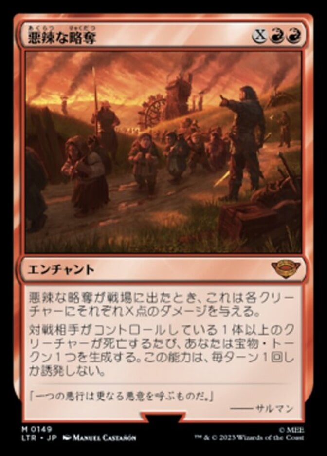 | Rules | When Spiteful Banditry enters the battlefield, it deals X damage to each creature. Whenever one or more creatures your opponents control die, you create a Treasure token. This ability triggers only once each turn. |
