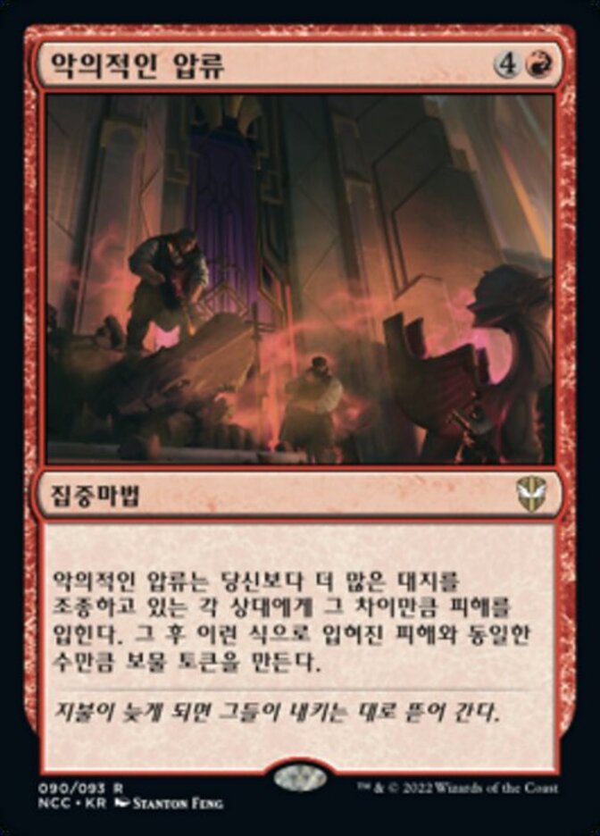 | Rules | Spiteful Repossession deals damage to each opponent who controls more lands than you equal to the difference. Then create a number of Treasure tokens equal to the damage dealt this way. |