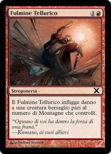 | Rules | Spitting Earth deals damage to target creature equal to the number of Mountains you control. |