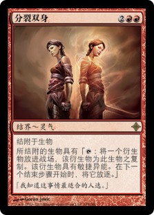 | Rules | Enchant creature Enchanted creature has ": Create a token that's a copy of this creature, except it has haste. Exile that token at the beginning of the next end step." |