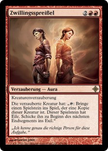 | Rules | Enchant creature Enchanted creature has ": Create a token that's a copy of this creature, except it has haste. Exile that token at the beginning of the next end step." |