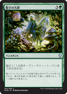 | Rules | Create three 1/1 green Saproling creature tokens. |