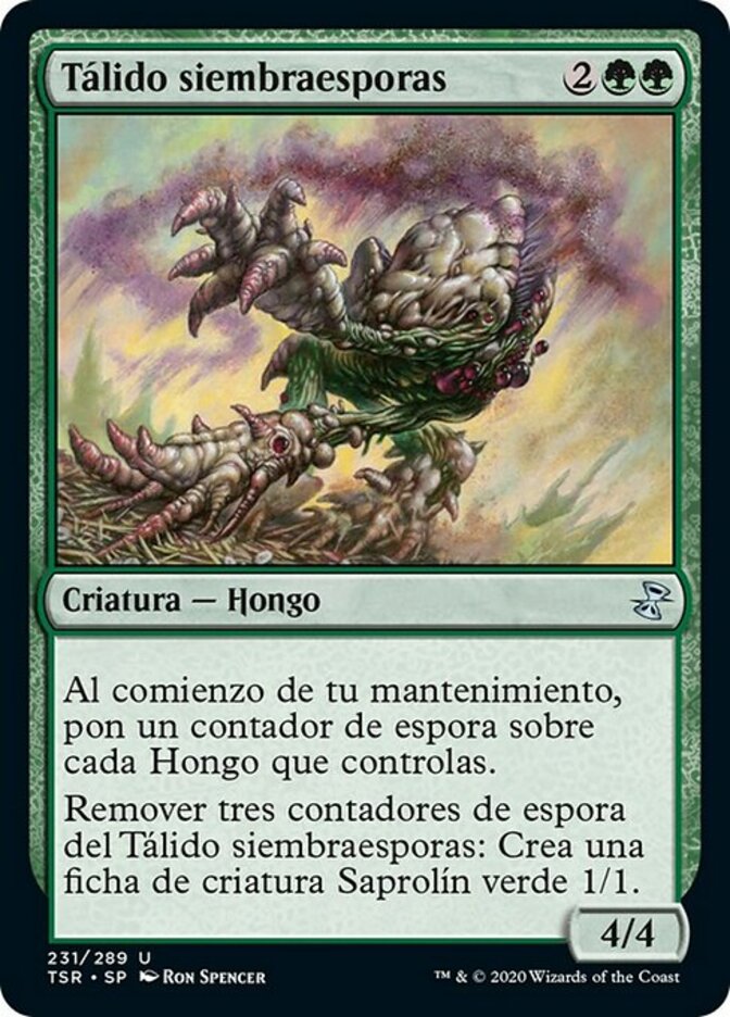 | Rules | At the beginning of your upkeep, put a spore counter on each Fungus you control. Remove three spore counters from Sporesower Thallid: Create a 1/1 green Saproling creature token. |