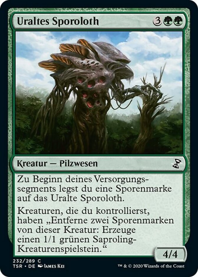 | Rules | At the beginning of your upkeep, put a spore counter on Sporoloth Ancient. Creatures you control have "Remove two spore counters from this creature: Create a 1/1 green Saproling creature token." |