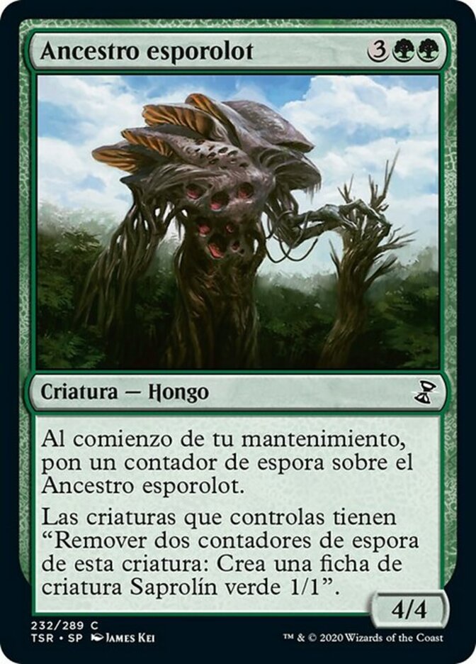| Rules | At the beginning of your upkeep, put a spore counter on Sporoloth Ancient. Creatures you control have "Remove two spore counters from this creature: Create a 1/1 green Saproling creature token." |