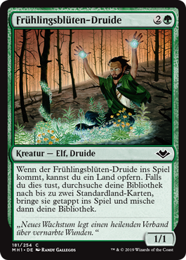 | Rules | When Springbloom Druid enters the battlefield, you may sacrifice a land. If you do, search your library for up to two basic land cards, put them onto the battlefield tapped, then shuffle. |