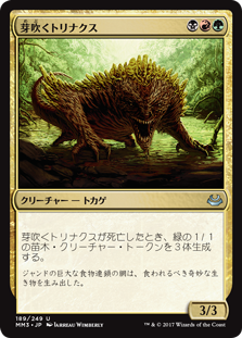 | Rules | When Sprouting Thrinax dies, create three 1/1 green Saproling creature tokens. |