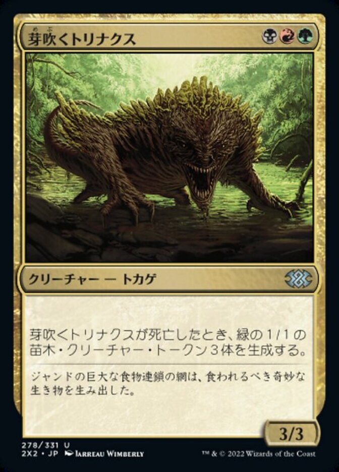| Rules | When Sprouting Thrinax dies, create three 1/1 green Saproling creature tokens. |