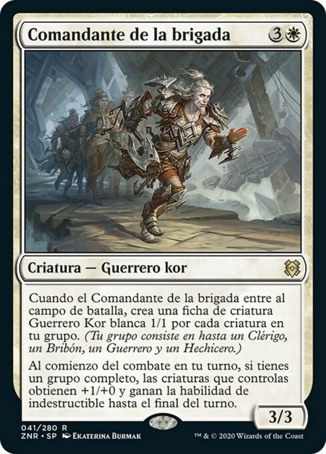 | Rules | When Squad Commander enters the battlefield, create a 1/1 white Kor Warrior creature token for each creature in your party. (Your party consists of up to one each of Cleric, Rogue, Warrior, and Wizard.) At the beginning of combat on your turn, if you have a full party, creatures you control get +1/+0 and gain indestructible until end of turn. |
