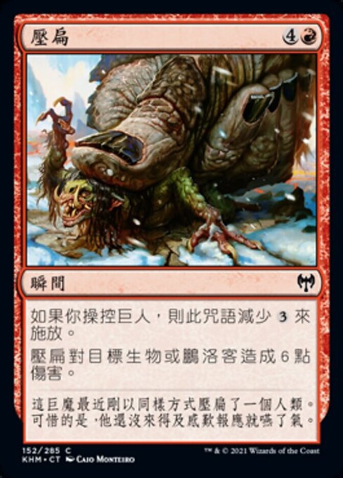 | Rules | This spell costs less to cast if you control a Giant. Squash deals 6 damage to target creature or planeswalker. |